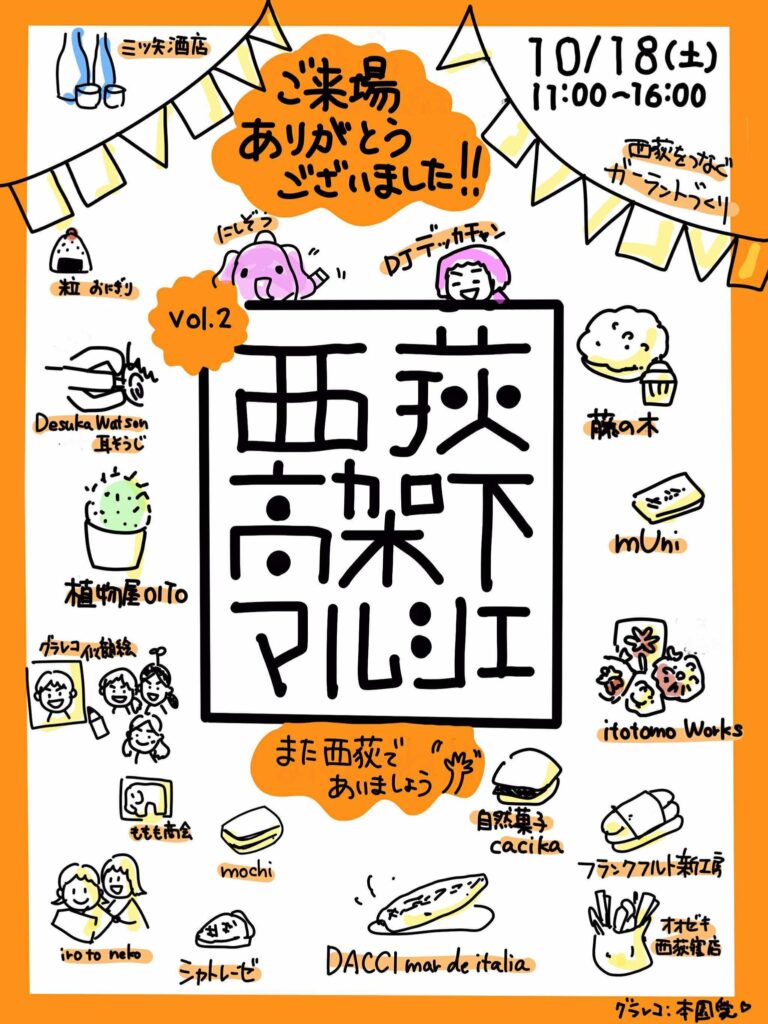 西荻窪と吉祥寺の間に位置する「西荻高架下(JR東日本都市開発)」で実施された「西荻高架下マルシェ」に、似顔絵グラレコのブースを出店しました。